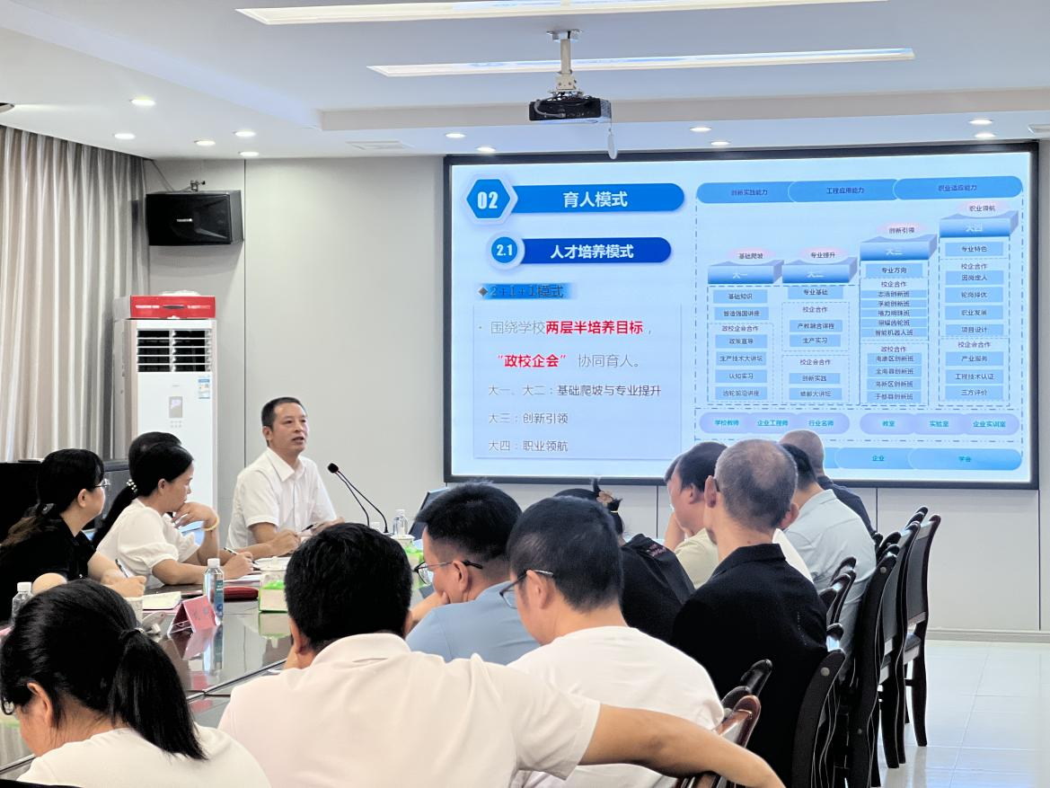 会前,刘辉副院长在学院领导陪同下参观了新能源产业学院的实验平台,对学院硬件建设与校企合作成果给予了充分肯定。会上,刘健平院长介绍了新能源产业学院的发展现状与规划,重点阐述了学院依托宜春锂电产业优势,在深化产教融合、推进校企协同育人方面所做的探索与实践。