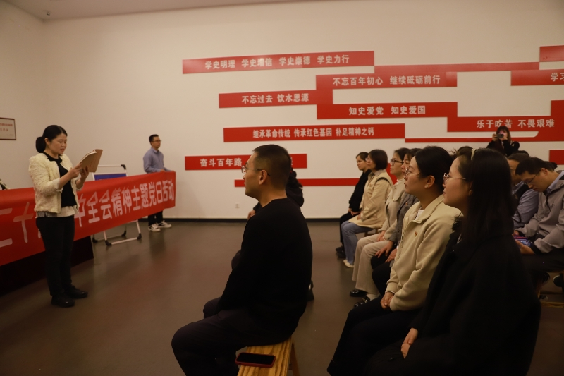 在场馆内开展所在党委组织开展了学习贯彻党的二十届四中全会精神主题党日活动,以微党课与红色故事诵读的形式展开,院党委书记龙玲生动地宣讲“学习贯彻党的二十届四中全会精神,敢担当善作为勇争先”的微党课。同时,学院其他领导及各支部书记带头,精选并现场诵读红色家书,他们结合铜鼓县作为秋收起义重要策源地的红色历史,讲述了革命先辈在极端艰难条件下坚守信念、奋勇抗争的感人故事,分享了新时代基层党组织传承红色基因,推动科技创新与服务地方发展的实践经验。鲜活的案例,真挚的情感,让在场党员深受触动,纷纷表示要以革命先辈为榜样,践行初心使命。