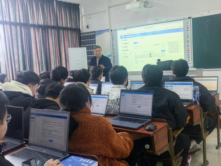 “AI不是替代教师的工具,而是帮助学生拓展思维、激发创新的伙伴。”王德伦教授以“行走机器人机构运动学分析”为案例,通过AI工具进行机构创新设计的推演与分析,展示了数据获取、转化与应用在教学中的具体实践。课堂上,2024级机制专业学生积极互动,现场气氛活跃。