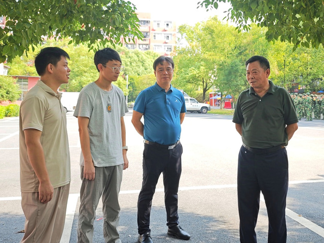 本站讯(学生记者 杨挺)9月8日上午,宜春学院党委委员、副校长罗政,校武装部军事教育科科长彭青一行人来到新生军训现场,看望慰问正在紧张训练的承训教官和参训学生。