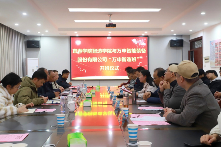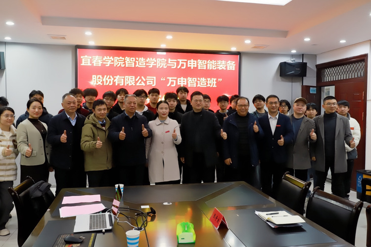 (本站讯学生记者高禹彦)2025年12月18日下午,宜春学院与宜春万申智能装备股份有限公司(以下简称“万申智能装备”)在智能制造与材料化工学院S402会议室联合举行“万申奖学金”颁奖仪式暨“万申智造班”开班仪式。万申智能装备董事长熊洪峰、公司高管团队,宜春学院智造学院党委书记龙玲、药学院党委书记王霏、智造学院院长刘健平,以及两学院班子成员、教师代表、获奖学生与学生代表共同出席。仪式旨在表彰优秀学子,并正式启动校企深度合作、协同育人的“万申智造班”开班。