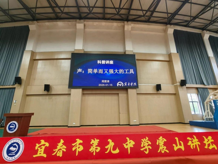 1月15日下午,宜春学院智造学院科普教育团队骨干周雷清博士应邀前往宜春九中,为该校高二年级全体学生带来了一场题为“声:简单而又强大的工具”的科普讲座。宜春九中党委委员、副校长刘小明出席并主持本次活动。